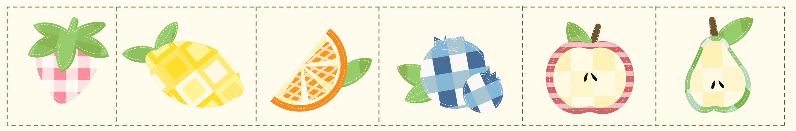 This project became a way to combine that simple joy with a homey, nostalgic aesthetic — turning everyday fruit into patches that feel stitched onto a handmade quilt.