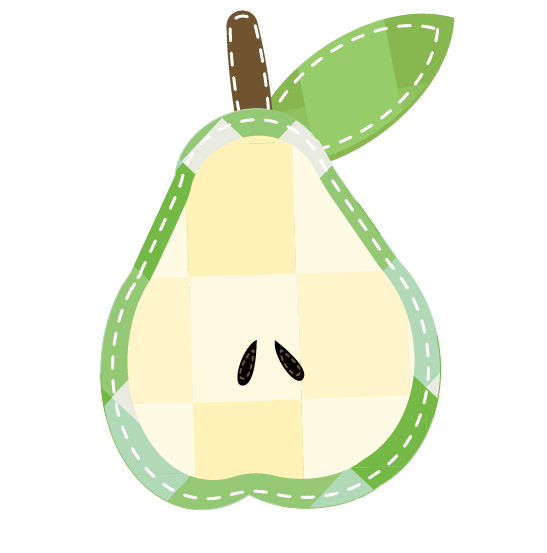 For the majority, I wanted to keep the original shape of the fruits with the updated design inside. I made some changes with the leaves and stems, but overall, not too much changed. I opted to have the apple and pear as halfs, the orange as a slice, and the lemon as a whole to differentiate as much as possible, both in hue, design of the patterns, and shape.